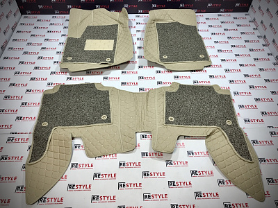 Ковры салона 3D Infiniti QX80 Левый руль Бежевые с золотой строчкой ( 003 )